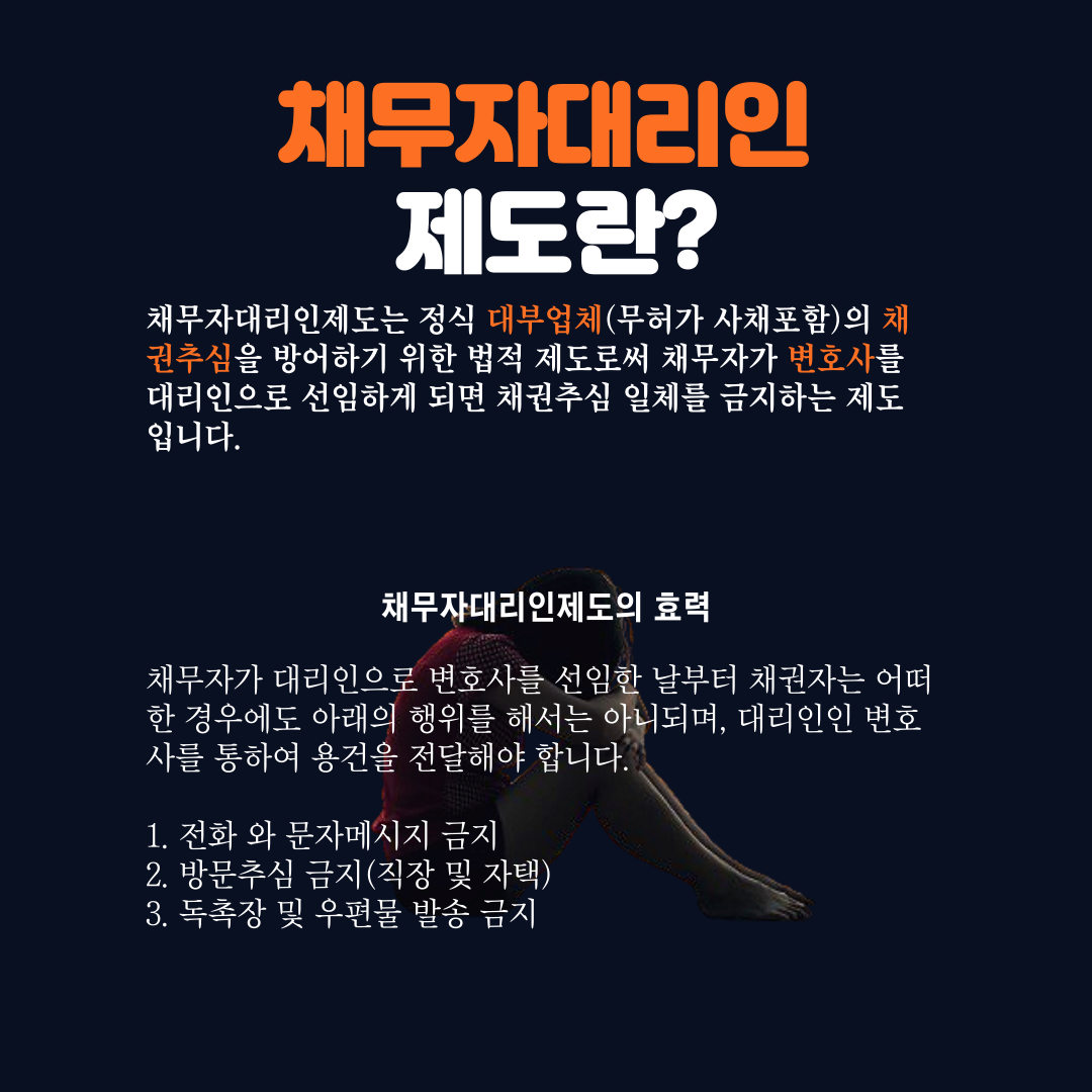 채무자대리인 제도란?(대부업 및 무등록 대부업자로부터 채권추심을 금지하는 제도입니다.)
