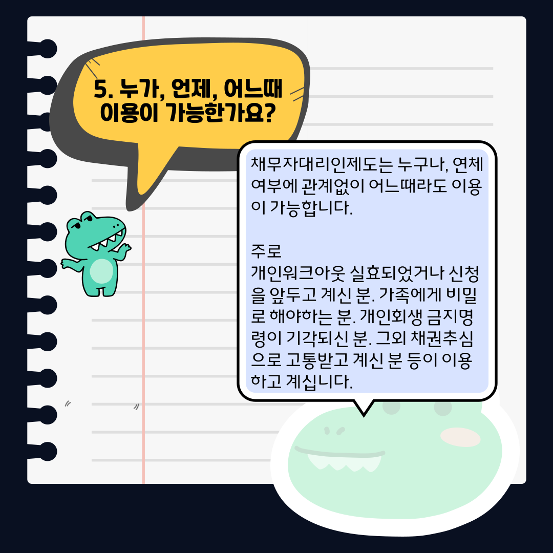 5. 대부업에 채무가 있다는 사실을 가족에게 알리고 싶지 않으신 분.